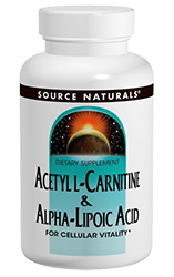 Source Naturals Acetyl L-Carnitine & Alpha-Lipoic Acid. This supplement combines acetyl L-carnitine and alpha-lipoic acid, both of which are vital for energy production. Specifically, the doses are 500 mg of acetyl L-carnitine and 150 mg of alpha-lipoic acid.