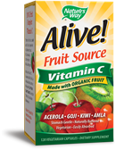 Nature's Way Alive Fruit Source Vitamin C. Although the dose is low compared with most other vitamin C supplements, Nature’s Way claims a distinction: that the vitamin C is derived from organic fruits, including acerola, goji, kiwi and amla. Four capsules provide 500 mg of vitamin C.