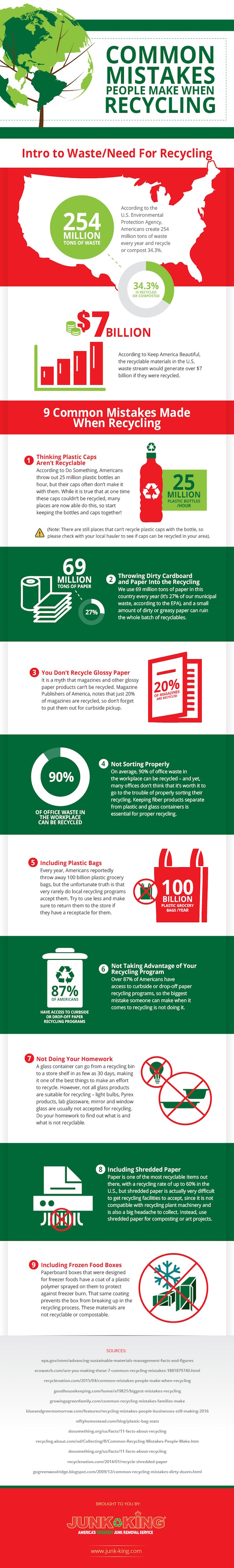 Refer to the infographic below, created by the Junk King, a California-based company that deals with, well, a lot of junk, to up your recycling habits. Remember to also check with your town's waste program to see if there are compostable options available.