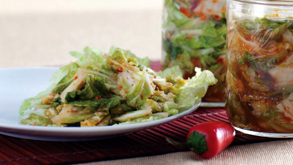 Up to 1½ quarts / Kimchi (kim-chee) contains lactobacilli, good bacteria produced by fermentation. You’ll need two or three pint-size jars with screw-on lids (or halve this recipe to make less). Kimchi is best eaten raw to maximize the friendly-bacteria benefits; it’s wonderful on salads, tossed with noodles and vegetables, or stuffed inside an omelet.