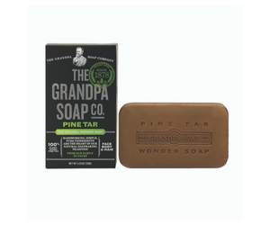 The Grandpa Soap Co. Pine Tar SoapNo flowery scents here! Perfect for face, hair and body. Guys will love this woodsy bar, made with pine tar, a natural moisturizer. This manly soap also contains responsible Rainforest Alliance Certified palm oil. |