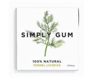 Simply Gum Fennel LicoriceMost gum is made from artificial sweeteners, nasty flavors and even plastic. Not so with this brand, which uses all-natural chicle (sap from the sapodilla tree), organic raw cane sugar, organic rice flour and natural flavoring. |