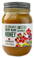 Brazil is emerging as a leading producer of honey, and Madhava markets four types of hard-to-find organically produced Brazilian honey. The Organic Very Raw is heated just enough to get it in the jar.