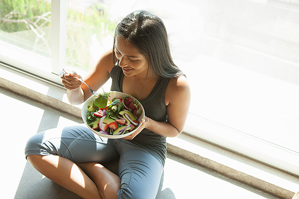 Northrup says the best way to ward off cravings is prevention. “You’ve got to have a strategy to deal with the cravings so you’re not just taking in more of the foods that spike blood sugar,” she says. “Here’s where doing something to counteract stress hormones will help you, such as a 10-minute dance break, short meditation, or deep breathing.”