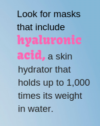 Next, look for ingredients based on your skin care need, whether it be soothing irritated skin, hydrating or providing a healthy-aging boost. “My favorite sheet masks tend to include hyaluronic acid (HA), which is an amazing skin hydrator that holds up to 1,000 times its weight in water, and lactobacillus ferment, which helps healthy collagen synthesis, intensifies ingredients and can reduce inflammation,” says Sobelman. Also look for plant-based actives such as plant stem cells to help rejuvenate.
