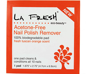 Travel-friendly pads are great for stashing at your desk or into a carry-on. Free from stinky acetone, they're also biodegradable, and one pad removes polish from all ten nails. High five to that!