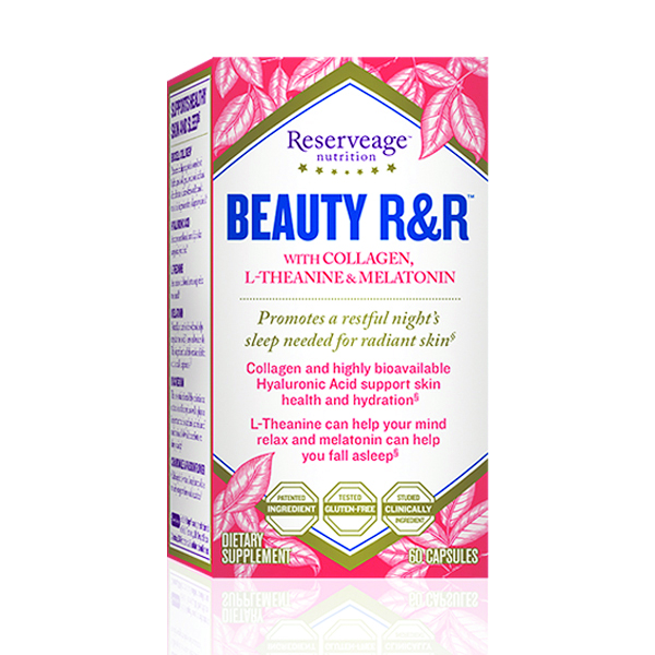 Reserveage Beauty R&R with Collagen, L-Theanine & MelatoninThis nutricosmetic formula addresses the root cause of a beauty woe. Collagen and hyaluronic acid support skin moisture and elasticity, while clinically proven sleep aids L-theanine and melatonin encourage quality Z’s, which are critical to allowing your skin to repair and renew. Beauty sleep … actualized! |