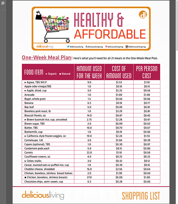 Here's what you'll need for all 21 meals in the One-Week Meal Plan. (See also: Nutrient Content Chart.)