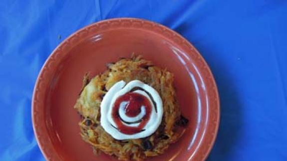 Spicy tomatillos add a nice heat to the sweet latkes.