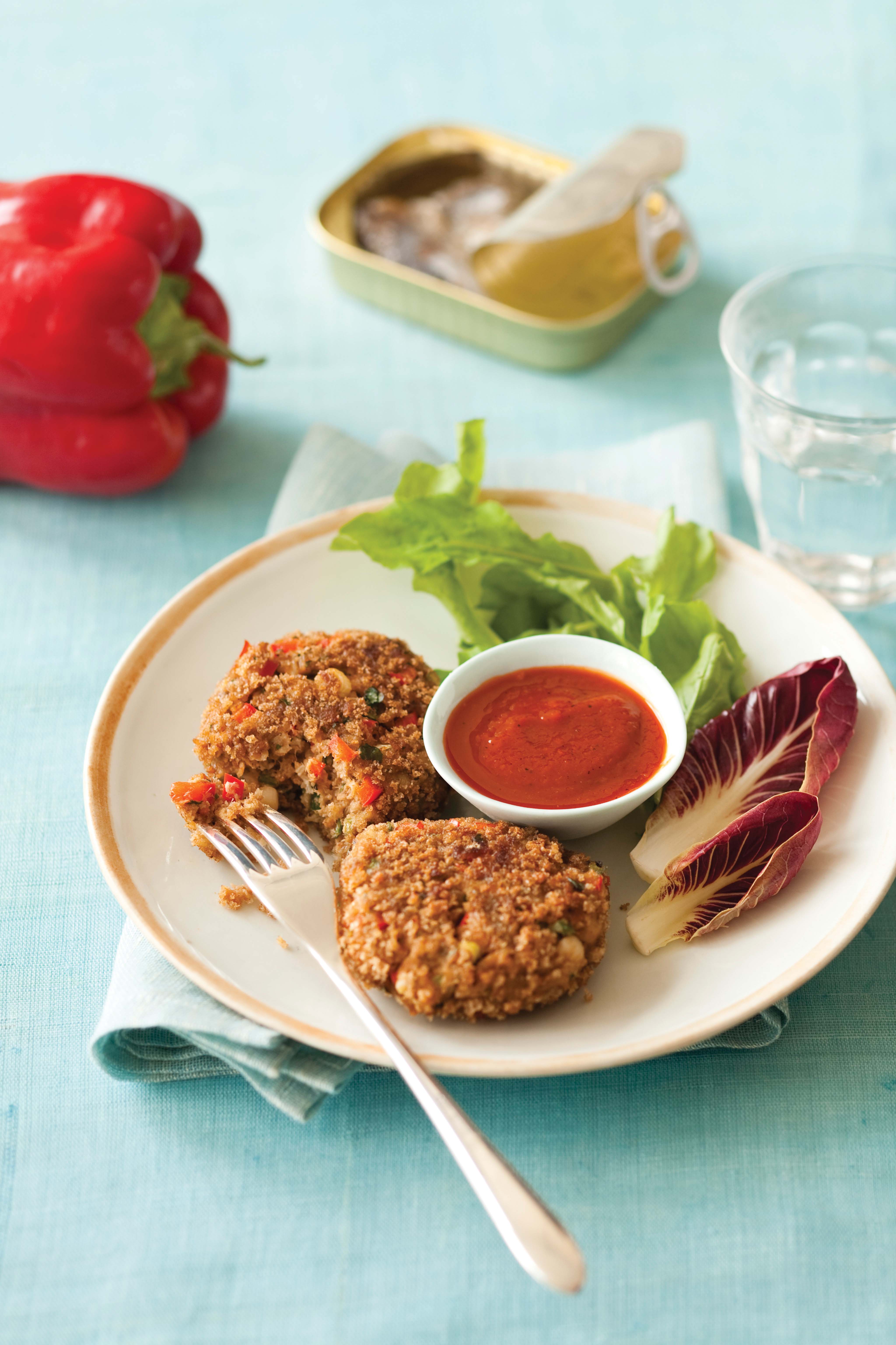 Serves 6 / One of the best food sources of antioxidant vitamin D, sardines also contain abundant anti-inflammatory omega-3s. This recipe tempers any “fishy” flavor in a spicy fish cake topped with a vitamin C–rich red pepper coulis (an easy-to-make sauce). View recipe.