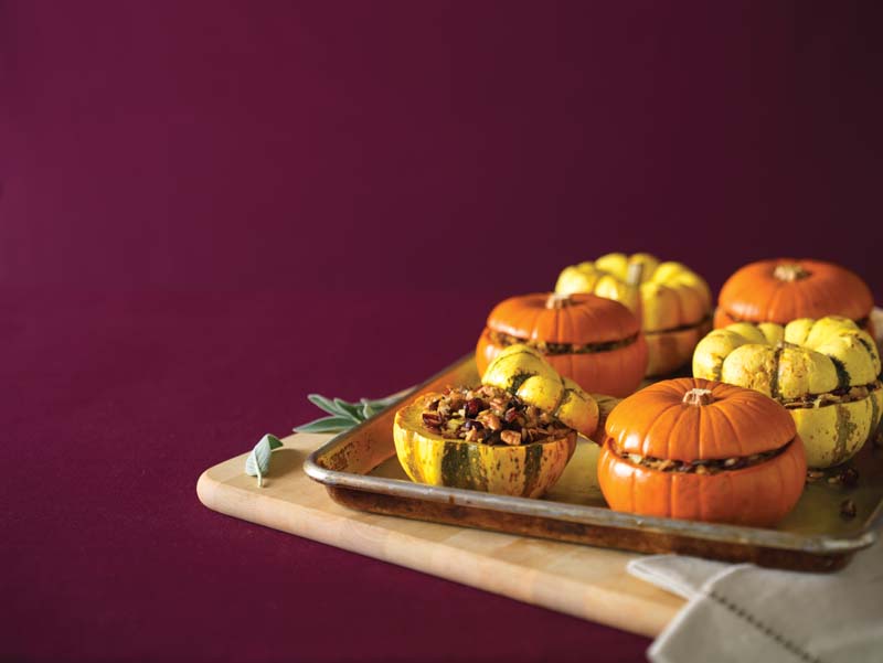 Serves 8 / Turkey fatigue? A little goat cheese bumps up the protein and flavor in this surprisingly easy vegetarian entrée. Make sure you don’t overcook the rice; it should be tender but still slightly chewy. Steps 1–4 may be done one day ahead; cover and chill. Let squash stand at room temperature 1 hour before continuing. Gluten Free, Veggie. View recipe