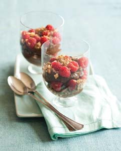 Gotta have chocolate? Look no further than this spectacular and healthy vegan mousse made with a secret ingredient: avocado! Layer with raspberries as shown, or skip the fruit and simply enjoy the contrast between the velvety mousse and the crunchy, good-fat-filled topping. View recipe.