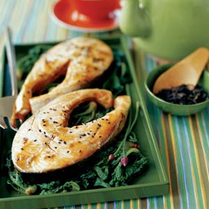Infused with the delicate flavors of green tea, ginger, and sesame oil, salmon takes on an Asian flavor in this simple, colorful meal. Use loose-leaf tea for the richest flavor. Serve with steamed rice. Get the recipe.