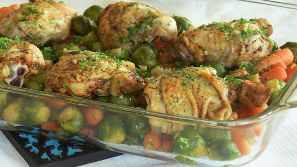 Paprika Chicken with Baby Carrots and Brussels Sprouts - $5 per serving
