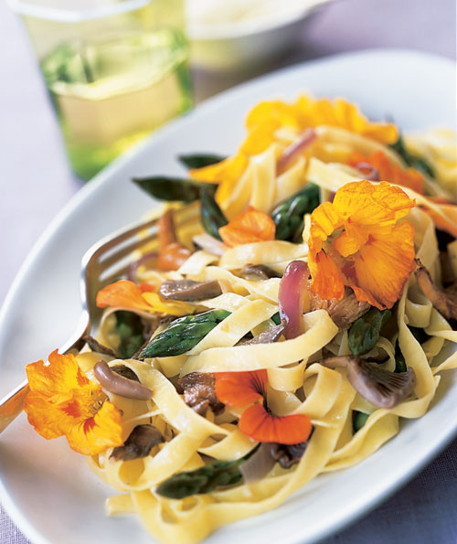 Fettuccine with Asparagus, Nasturtiums, and Wild Mushrooms