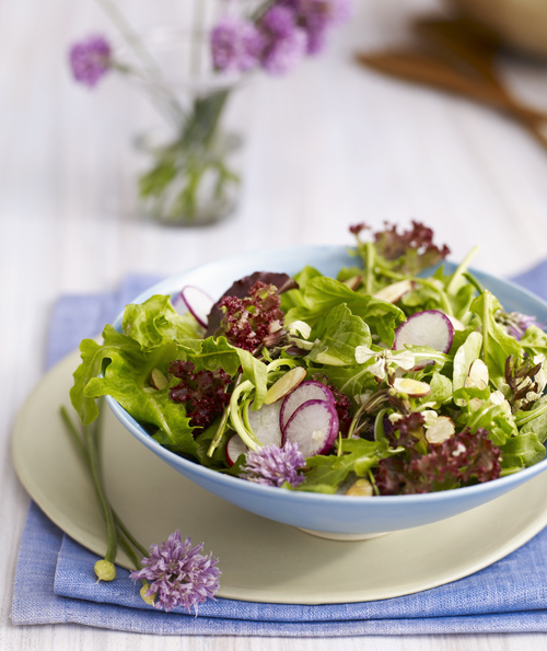 The dressing is a citrus mix, reduced to concentrate flavor. It’s a friendly and accommodating dressing that encourages you to concoct your own mix of herbs and greens. View recipe.