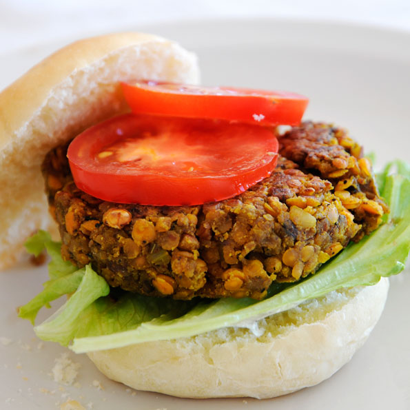These flavorful, hearty burgers may be a bit crumbly; if you prefer, add a binder such as an egg or soaked ground flaxseed. They’re terrific on focaccia with tomato and red onion.