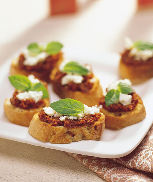 Crostini with Sun-Dried Tomato Pesto and Feta Cheese