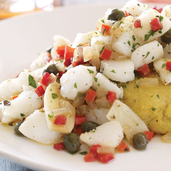 This is the Puerto Rican version of Spanish escabeche (ceviche); its vinegary taste pairs beautifully when layered over starchy plantain mofongo. Escabeches are made with many different seafoods; try it with shrimp or octopus. Get the recipe.