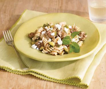 Skillet Brown Rice Fusilli with Lamb and Feta