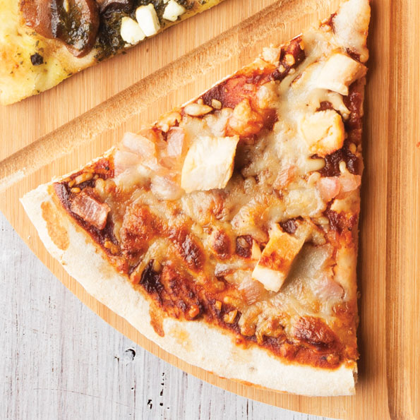 Beneath high-quality toppings like hormone-free chicken, Naked’s whole-grain crust is fortified with prebiotic agave fiber and heat-resistant probiotics.