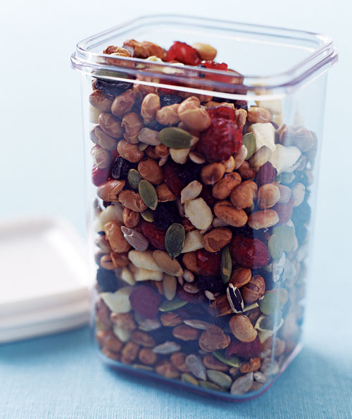This tasty snack can be mixed ahead of time and munched on for several weeks. If you’re sensitive to soy, substitute raw almonds for the soy nuts. View recipe.