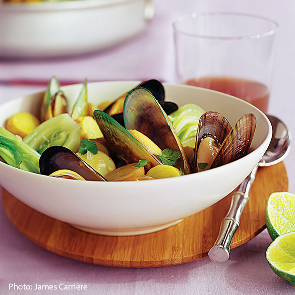 A light coconut broth bathes plump mussels, creamy potatoes, and crisp-tender bok choy in this aromatic, Asian-inspired meal. View recipe.