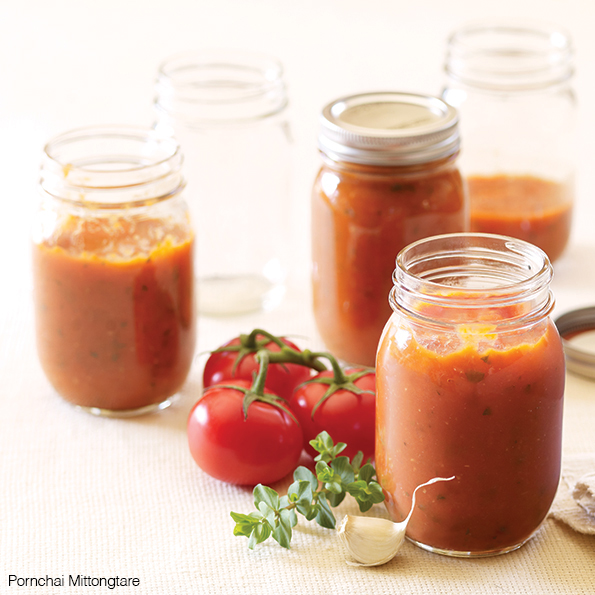 Use this as a spaghetti sauce, to top chicken, or as a base for soups, stews, or chili. To peel ripe tomatoes, submerge in boiling water for 1–2 minutes, lift out, and cool in ice water; skins should slip off.