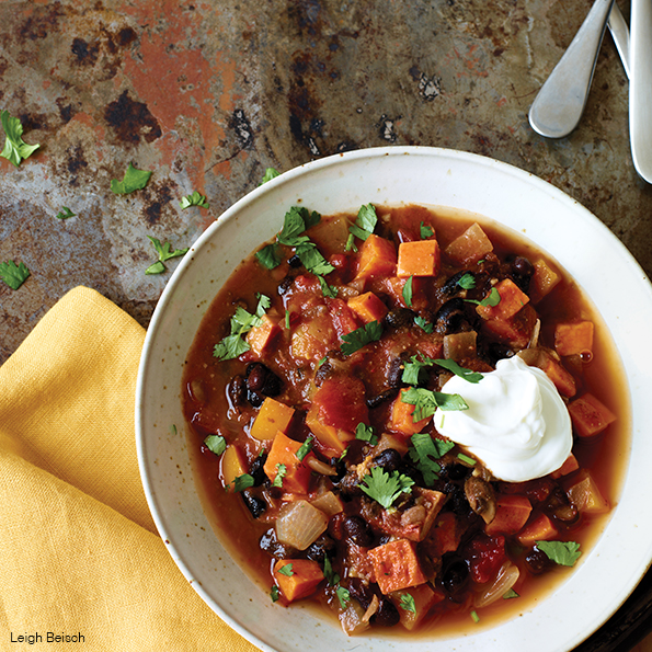 This easy chili with seasonal hues of orange and black makes a hearty pre-trick-or-treating dinner. If you’re not vegan, add a dollop of plain Greek yogurt or low-fat sour cream for garnish. Get the recipe.