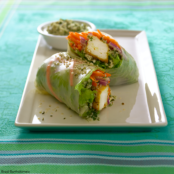 Tofu Rice Wraps with Hemp-Garlic Sauce