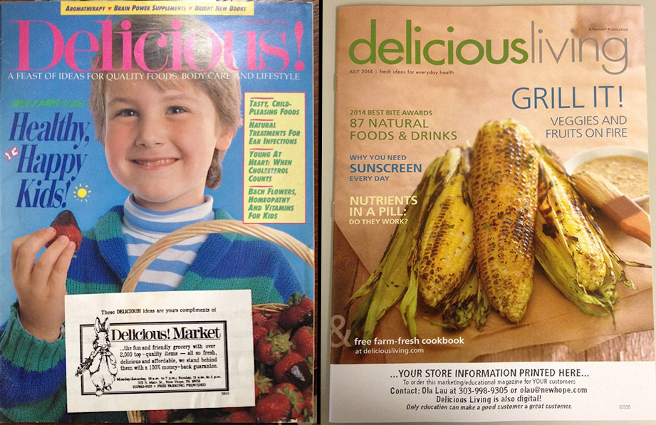 Today, natural products retailers still buy Delicious Living and give copies to customers for free. Each store's information is digitally printed in a box below the cover image.