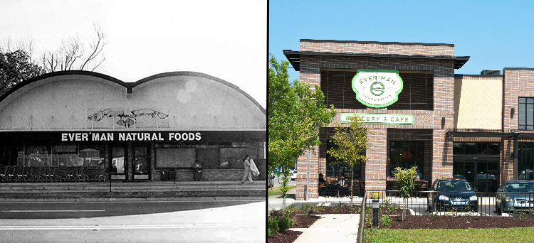 "Ever'man is a member supported, natural food co-op and has been operating in the area for over 37 years. We specialize in whole foods, local, organic produce, organic wines, vitamins, bulk grains and herbs, and much more. Every item in the store follows our food product policy, outlined by our membership." The photo on the right shows the store's grand reopening in April 2014.