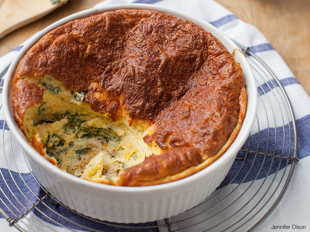 $0.87 per person / Staff favorite! Airy cheese soufflé sounds fancy, but it’s actually quite easy and a fun change of pace; plus kids love it! With a serving of spinach included, you have an elegant yet very inexpensive one-dish meal, high in protein and iron.