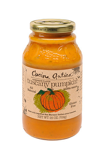 A blend of fresh pumpkin puree, San Marzano tomatoes, garlic, rosemary and sage. Mmm ... we want this on ravioli tonight. You could also blend it with milk for a ready-to-go fall soup.