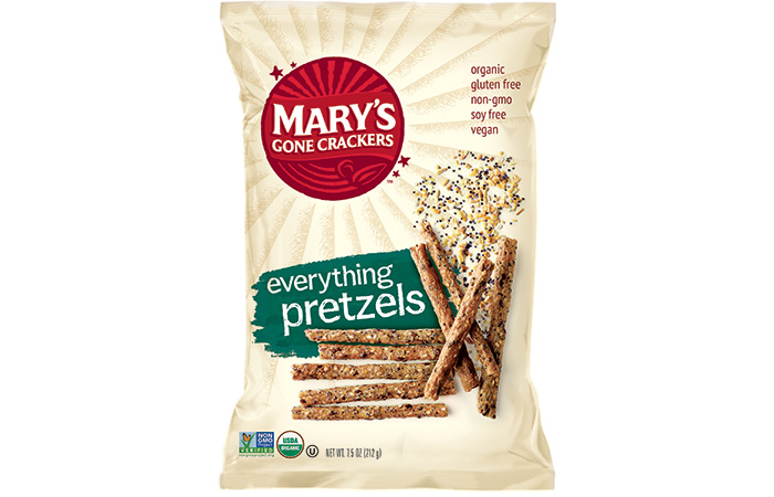 Break out the hummus for these USDA Organic, super-crispy, gluten-free pretzels, heavily seasoned with poppy seeds, herbs, garlic, and onion.