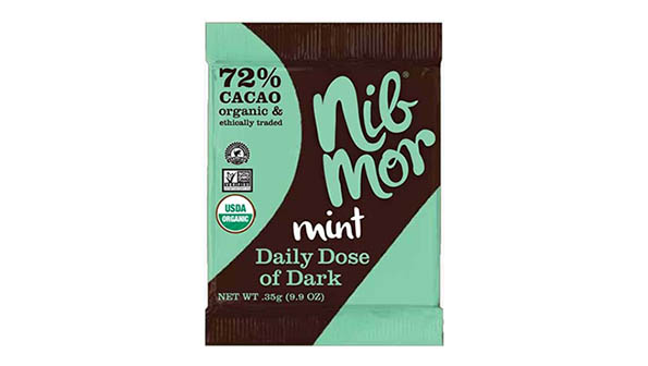 Each cacao nib-filled square contains 72 percent USDA Organic cacao, organic cane sugar, organic mint flavoring, vanilla, non-GMO soy lecithin and more. A bright, delicious bar that also freshens.
