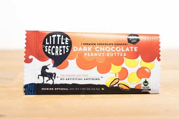 No artificial colors here: Natural ingredients, such as turmeric, beet juice, spirulina, pumpkin, carrot and red cabbage juice give these Fair Trade USA-certified candy-coated chocolates their attractive tints.