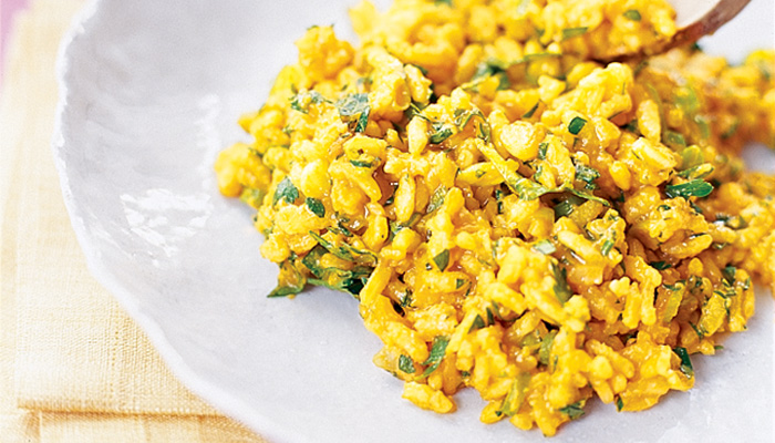 This takes about one hour to complete, but really you're doing little more than an occasional stir. Homemade carrot juice is exquisite, but buying a quart of fresh ready-made makes this dish supereasy.
