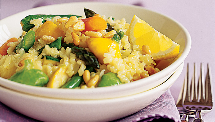 Use this recipe year-round by subbing in your favorite seasonal vegetables. Use high-quality Parmesan cheese and freshly toasted pine nuts for best flavor.