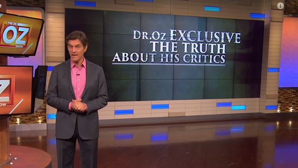 A week after 10 doctors ask Columbia University to remove Dr. Oz from its faculty, the TV doc devotes an episode of his show to addressing critics who accuse him of sensationalization and conflicts of interest.