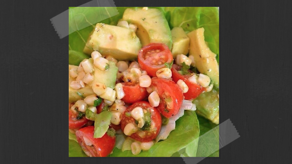 Caption: Grilled white corn, avocado, and cherry tomatoes on butter lettuce cups. Recipe from @deliciouslivingmag