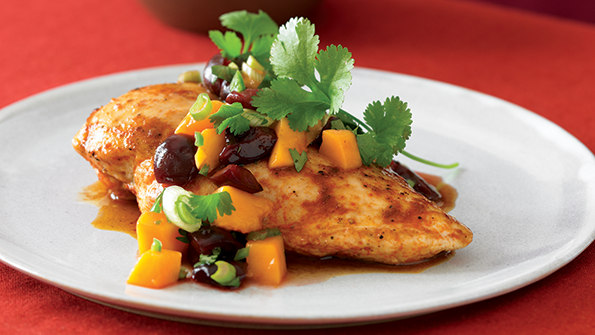 Salsa made from frozen fruit adds a snappy flavor to easy-to-cook boneless chicken breasts. Serving tip: Accompany with a side of braised greens or green beans.