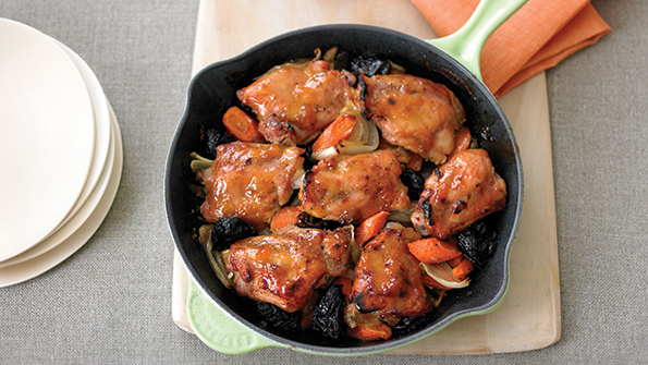 Who knew carrots and prunes were just the thing to make chicken thighs exciting again? Once you experience the sweet-salty pops of flavor, this one-skillet dinner is sure to be on repeat in your household.