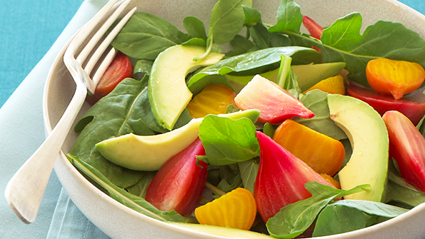 Turn up the yum factor on a plain salad with the additions of fresh beets, avocados, goat cheese and a simple citrus vinaigrette.