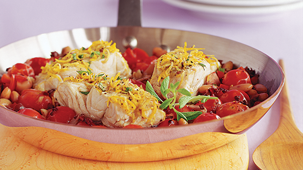 Keep Dad in top health with this hearty white fish meal that embodies all that is good about the Mediterranean style of eating: lemons, garlic, olives, white beans, fresh herbs and a splash of wine.