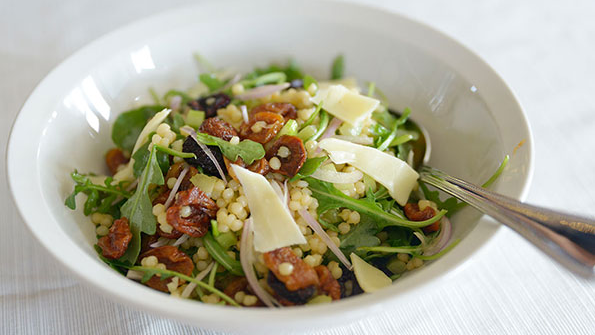 Salty, creamy cheese nicely balances cherries' sweetness and arugula's bite. You can dehydrate your own cherries for this recipe by using roughly 2½ pounds fresh cherries, stemmed, pitted, and cut in half. This may take anywhere from 13 hours to 1½ days depending on your dehydrator.