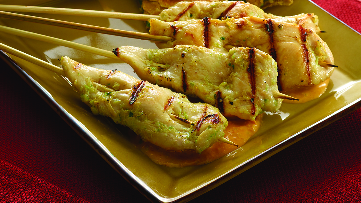 Chicken satays are delicious and fun appetizers that won’t leave your guests fumbling with silverware. The peanut sauce can be as mild or spicy as you desire.