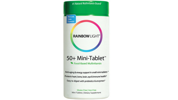 This multi is made for women in their 50s and beyond, replete with small pill size, concentrated superfoods and extra digestive support. This product is gluten-free and soy-free and three mini tablets makes a daily serving.