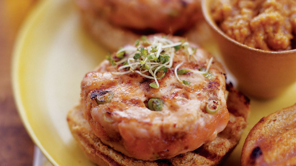 Grilled Thai Salmon Burgers with Peanut Sauce
