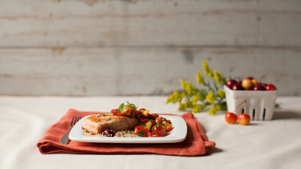 Grilled Herb-Crusted Salmon with Rainier Cherry Relish